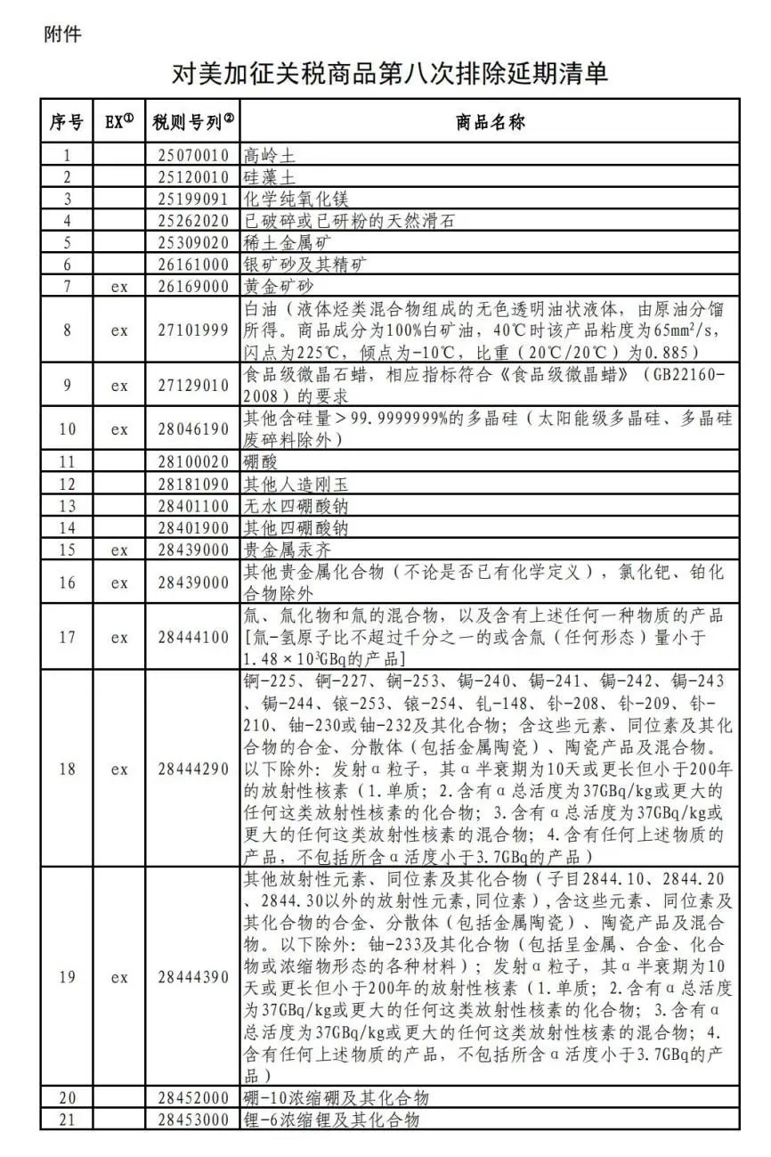 - 关税税则委公布对美加征关税商品第八次排除延期清单;